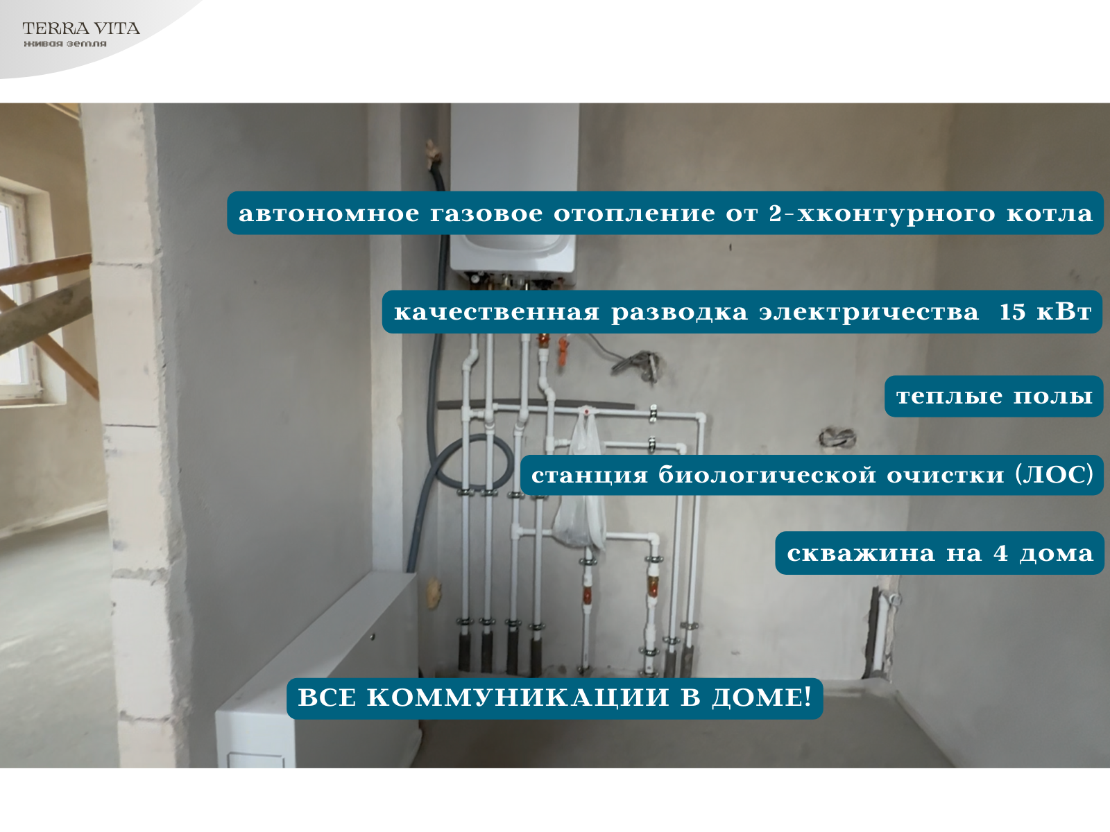 ✔️ кладовка с входом из зоны кухни 5.1 м2 с вдухконтурным котлом, счетчиками, гребенкой по контурам